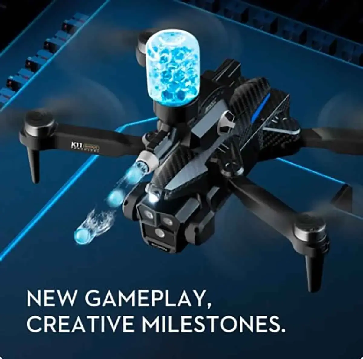 One of the most innovative features of the K11 Max Drone is its ability to shoot water bombs, making it a fun and unique option for recreational activities. Perfect for water-based games, this drone can launch water bombs or "jello shooter" projectiles from the air, adding a playful element to your flying experience. Whether you are participating in drone battles, cooling off on a hot day, or simply having fun with friends, this feature elevates the entertainment value of the K11 Max.